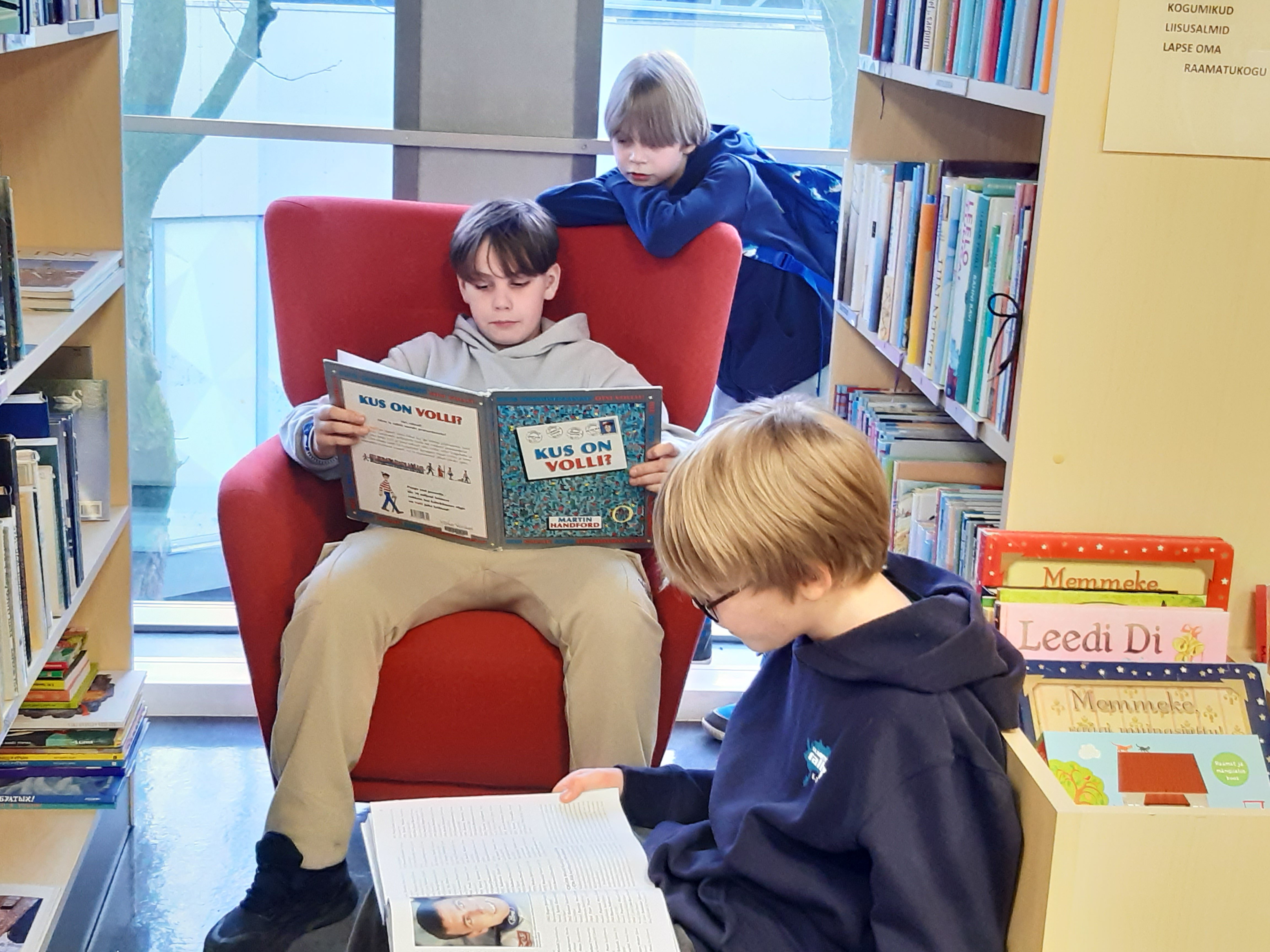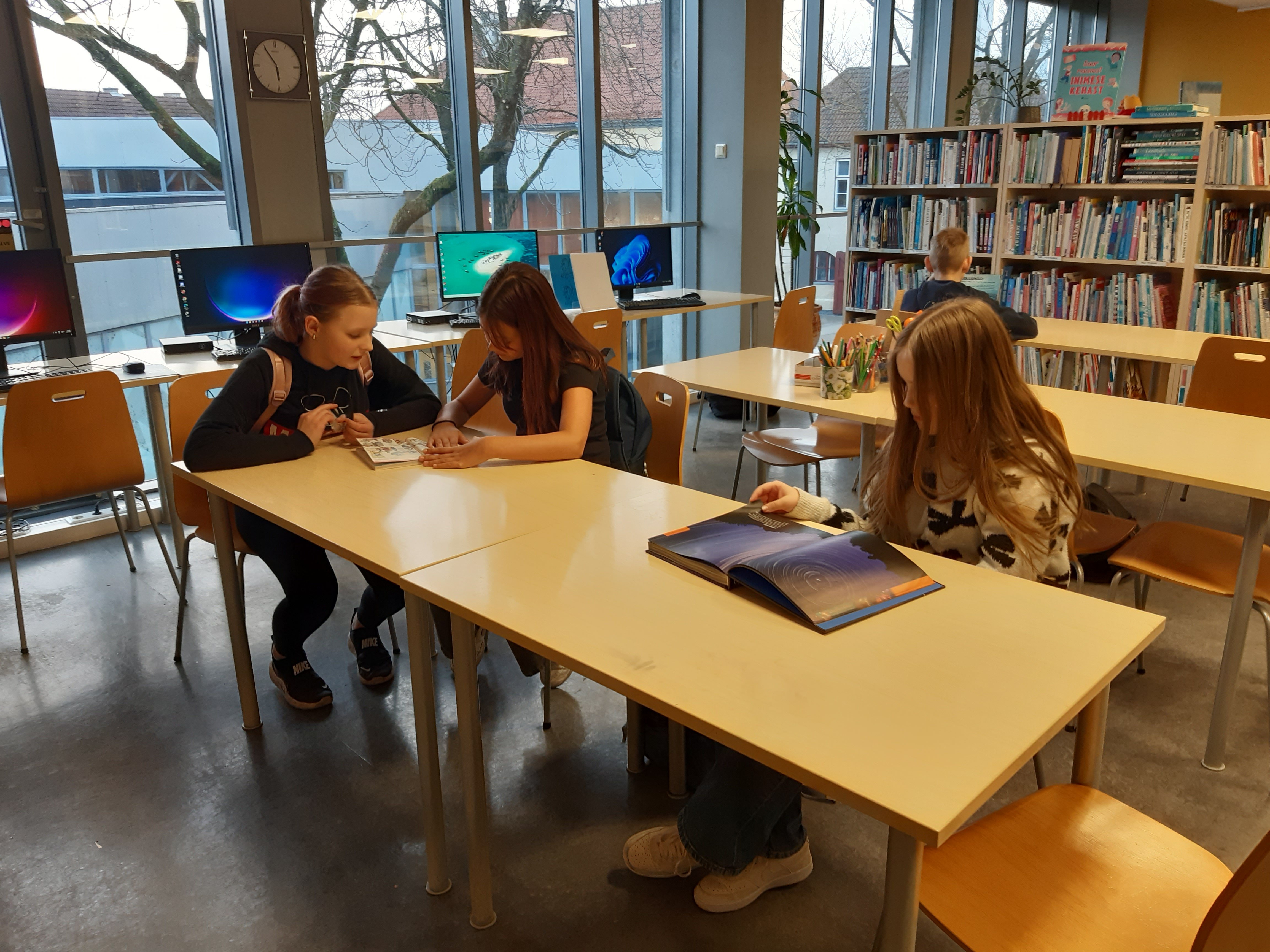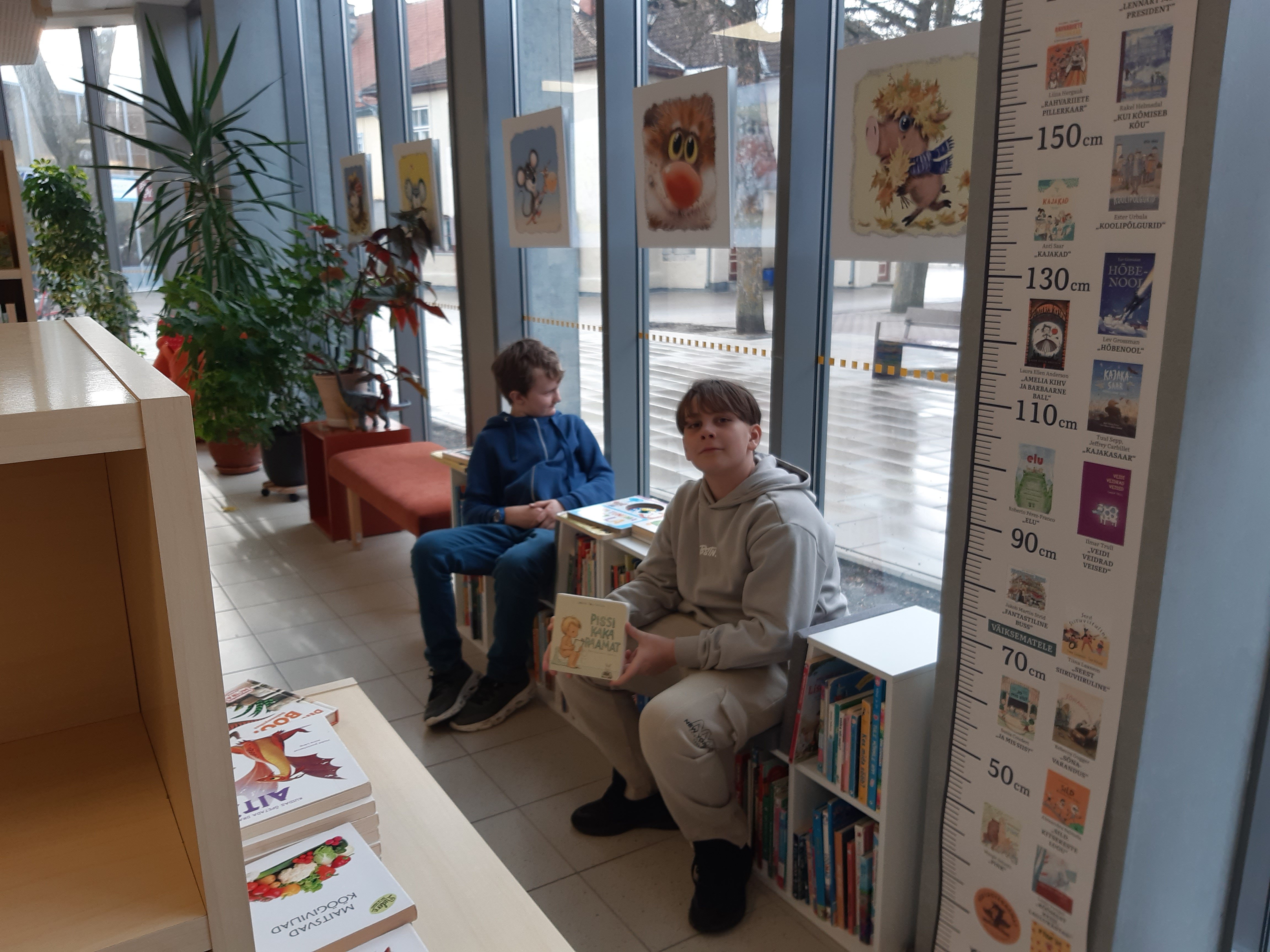 Meiega tegeles bibliograaf Maiu Paju. Külastasime laste osakonda, kus tutvustati raamatuid ja anti teavet, "Kuidas saada lugejaks?". Edasi liikusime laste lugemissaali. Seal tutvustati raamatuid, mis olid seotud emakeelepäevaga