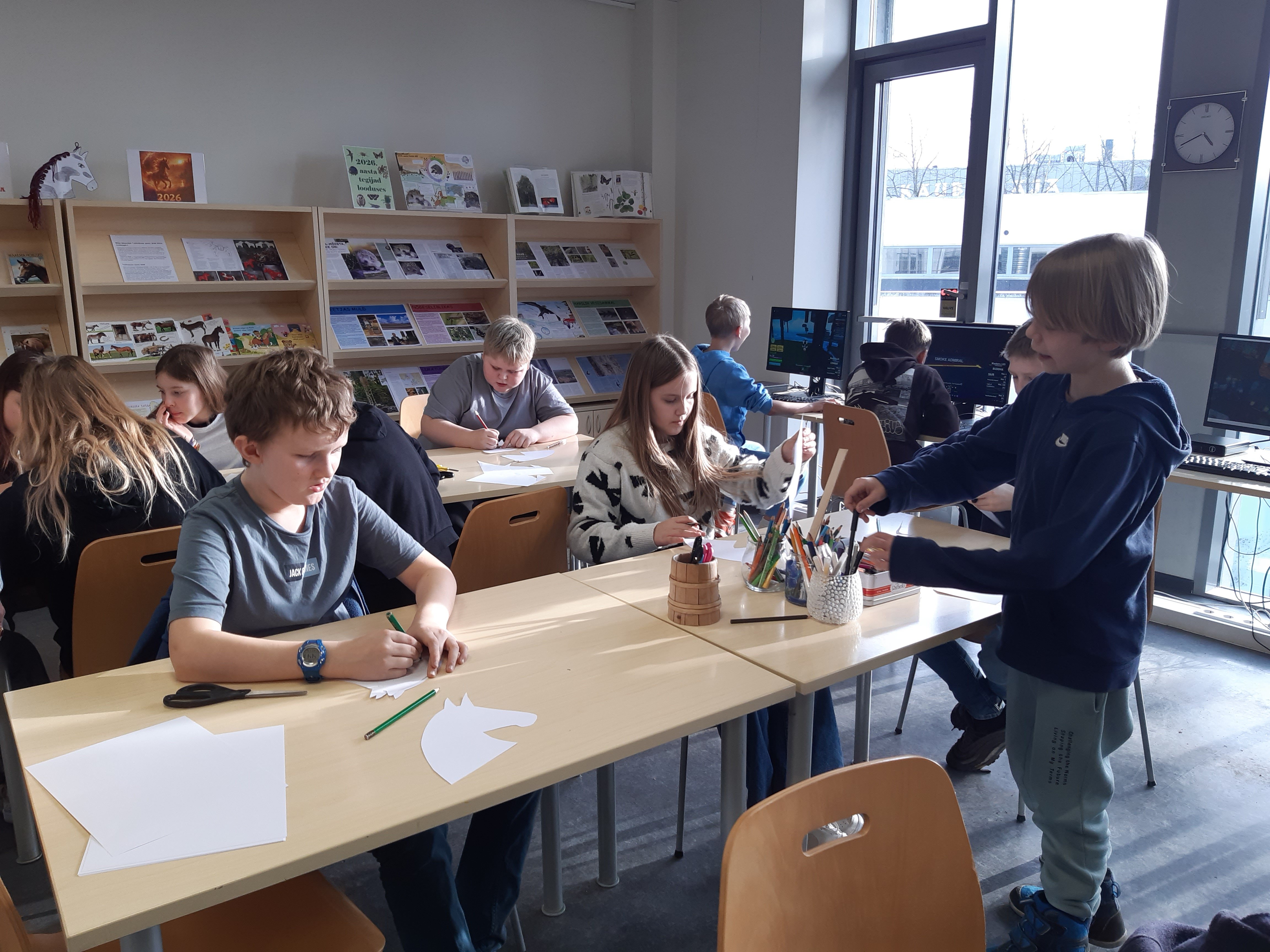 Pärast lugemisega tutvumist algas hobuste valmistamine, et meenutada hobuseaasta saabumist. Hobune valmis, kinnitasime klassijuhataja valmistatud toiduga keha. Hiljem oli vaba aeg, et tutvuda endale põnevate raamatutega.