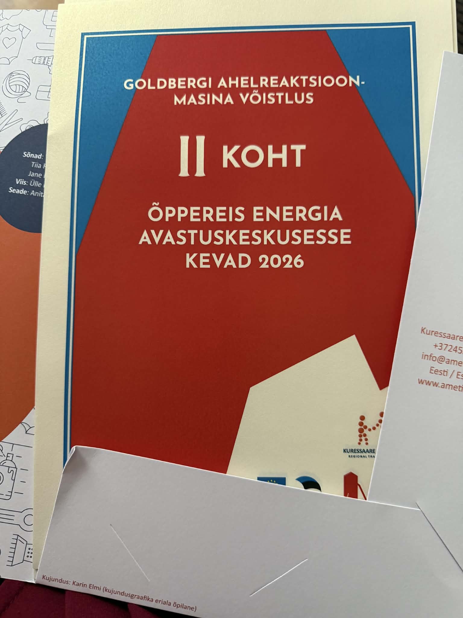 Meil on suurepäraseid uudiseid, sest meie kooli esindustiim "Porgandid" saavutas maakondlikul Goldbergi masinate võistlusel väärt 2. koha. Vägev tulemus, mis näitab suurepärast meeskonnatööd, nutikust ja loovust! Aitäh ja palju õnne meie tublile tiimile, kuhu kuulusid 4. kl poisid: