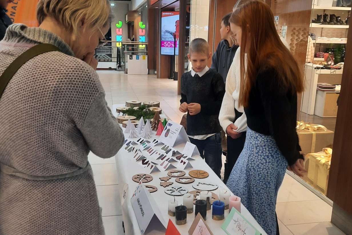 Kolmapäeval, 13. detsembril toimus Auriga kaubanduskeskuses Kuressaare Ametikooli poolt korraldatud Saaremaa õpilasfirmade jõululaat. Eelmisel nädalal kooli jõululaadal saime nii palju head tagasisidet enda mini-minifirma toodete müügist, et otsustasime kutse vastu võtta ja ka suurel õpilasfirma jõululaadal osaleda. Laadale võttis mini-minifirmade juhendaja, Kaidi Liivas, kaasa koolilaadal aktiivsemalt müügitööd üles näidanud mini-minifirma õpilased: Mihkel Heinla (2. kl), Romet Rahnel (5. kl), Luisa Tänav (6. kl) ja Rael Grethel Arge (6. kl). Õpilased olid ka linnas laadal silmapaistvad müüjad, kes tundsid oma toodet ja selgitasid hea meelega ka toote valmimisprotsessi. Müügiks läks mitmed seinakuused, rahakaardid, käsitöötsemendi põhjaga küünlad, (led)küünlaalused ja vanadest CD-plaatidest ümber töödeldud disainehted. Kõrvaehete puhul sai palju positiivset tagasisidet ka nende slogan „Ole ringmajanduse kuninganna“. See meelitas ostma isegi Junior Achievement Eesti (õpilasfirmade programmi) arendusjuhi Epp Vodja. Tegelikult võime öelda, et päris mitu ringmajanduse kuningannat liigub nüüd meie seas ringi, sest kannavad meie mini-minifirma disainehteid.