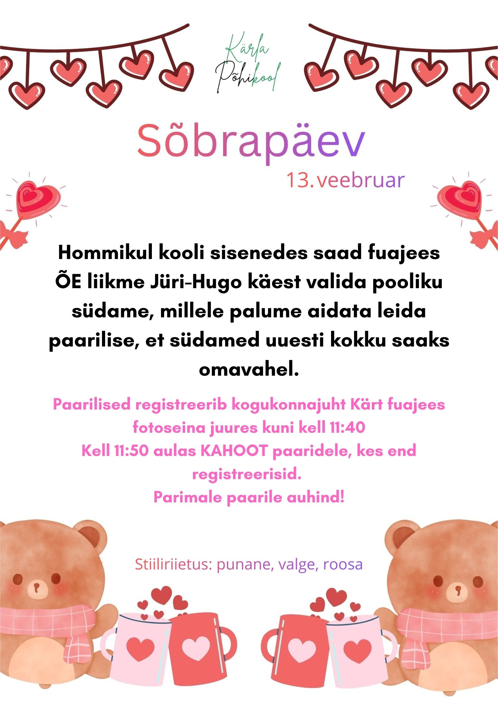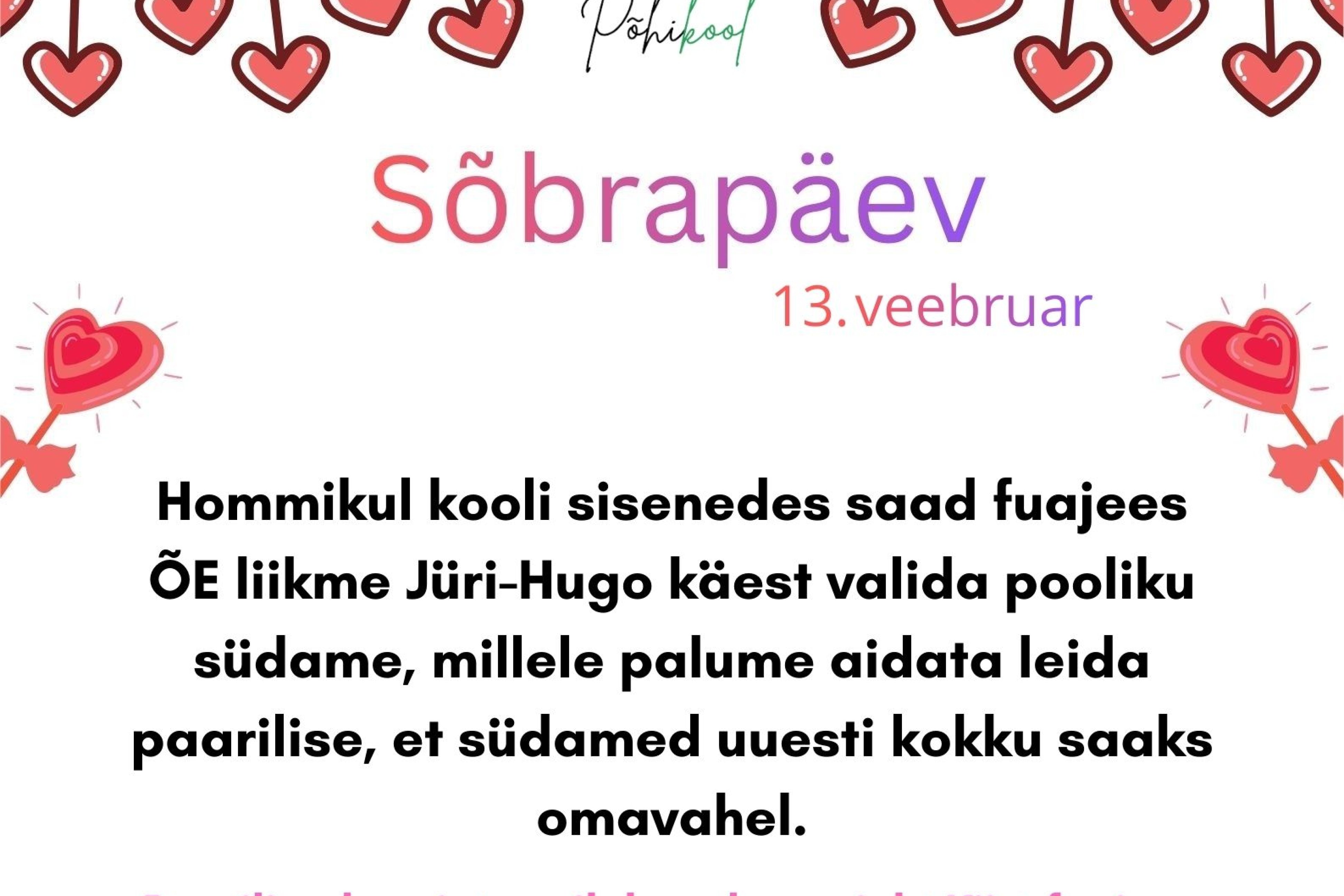 Sõbrapäev reedel 13. veebruaril koolimajas