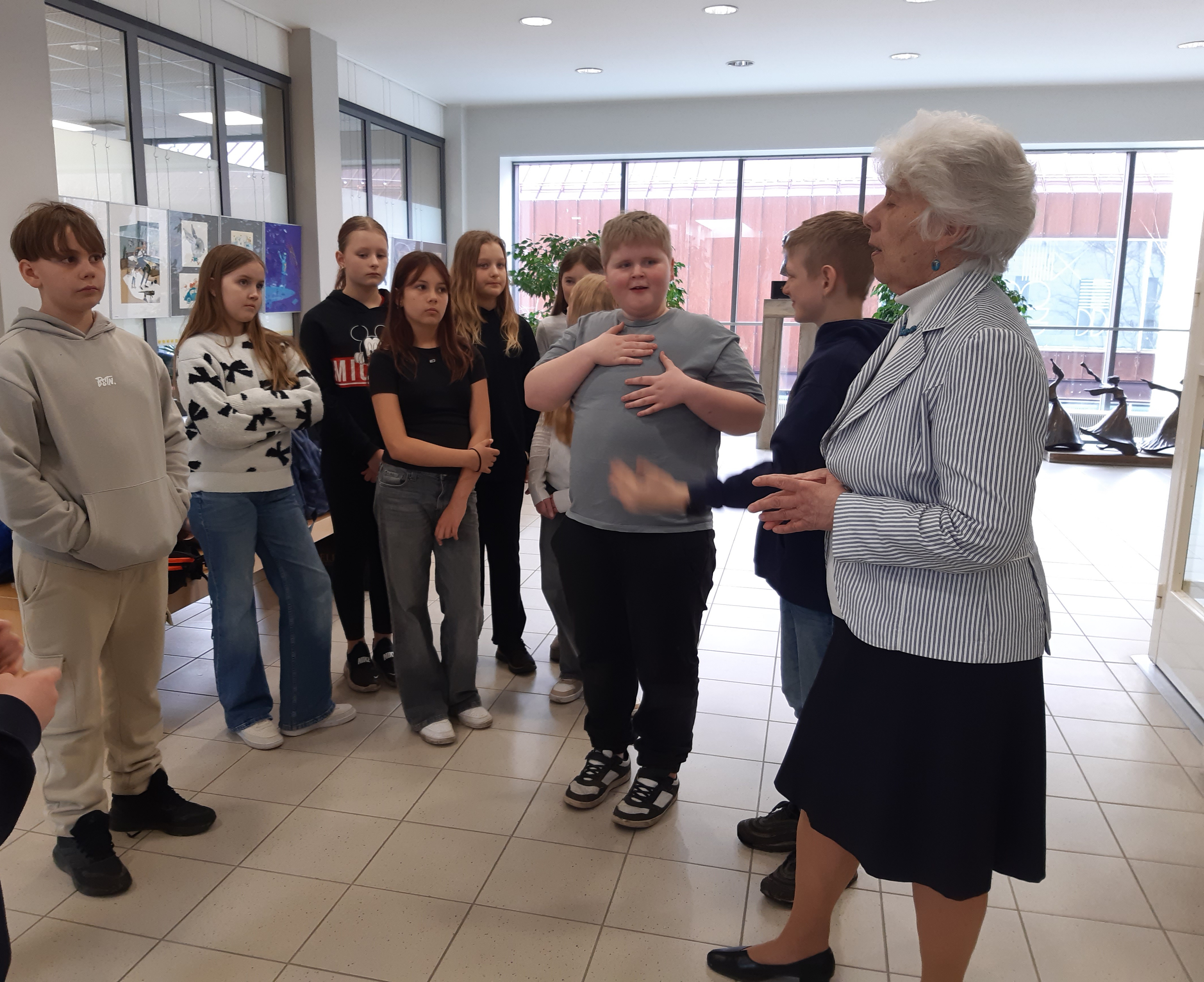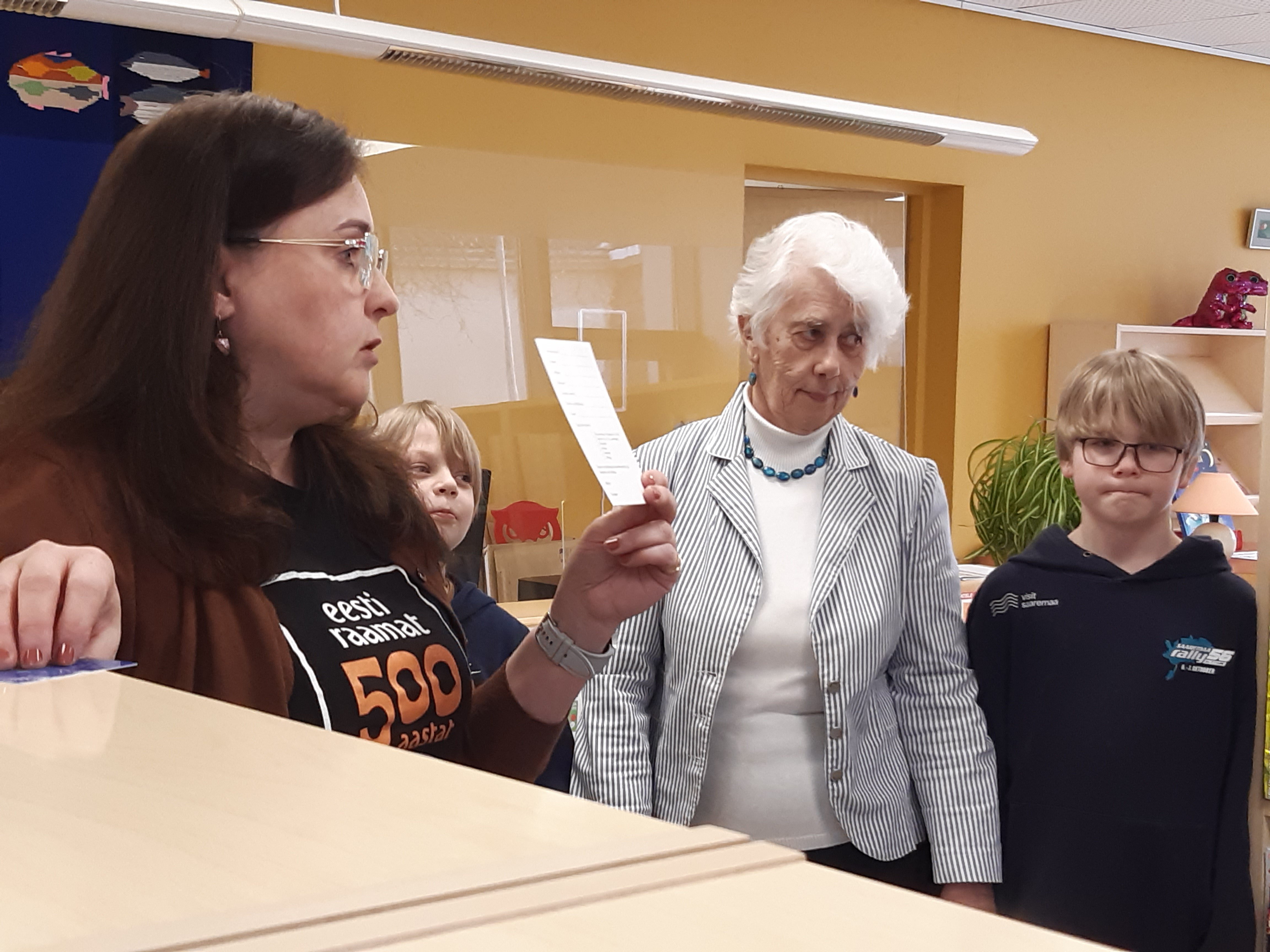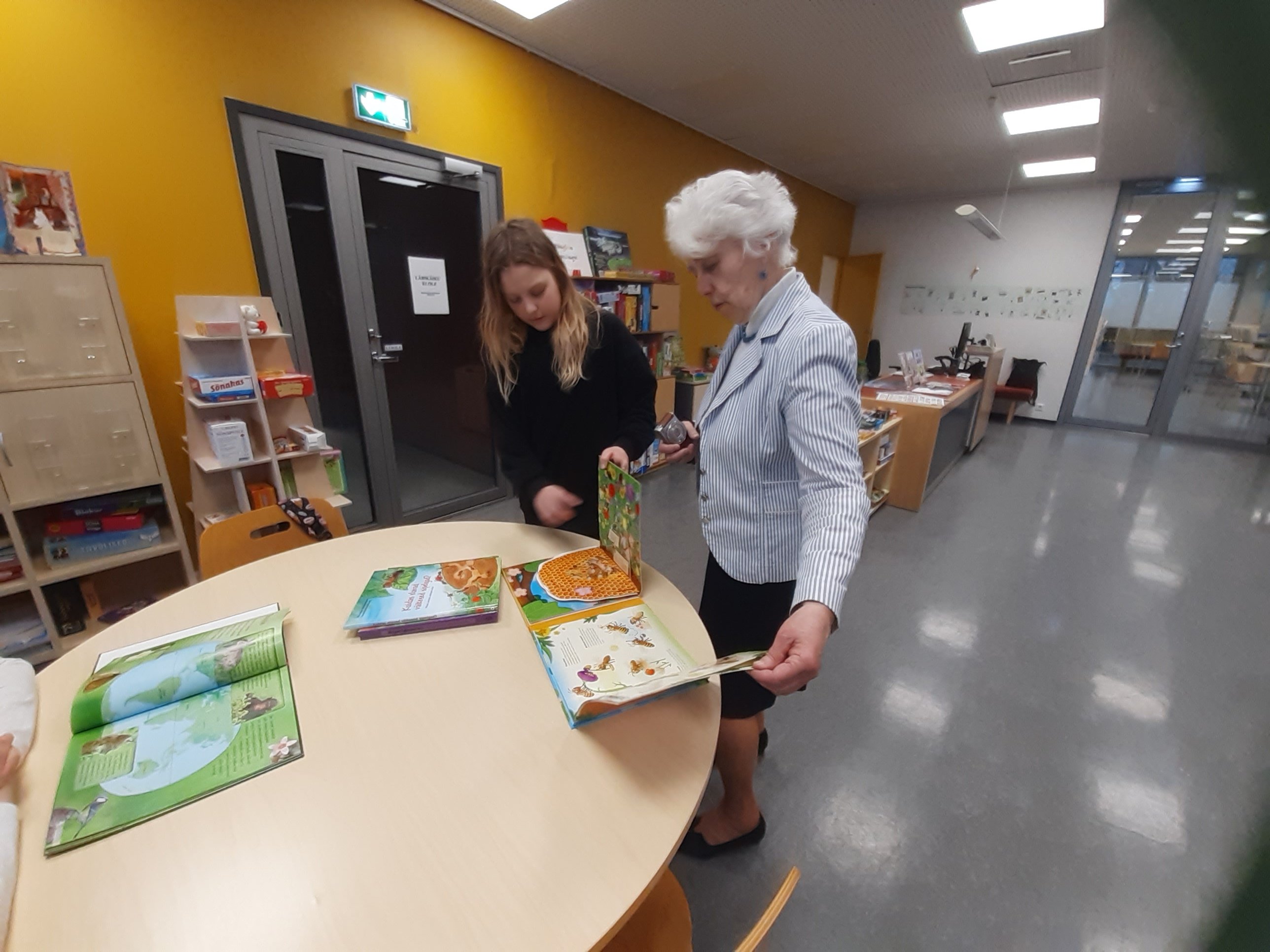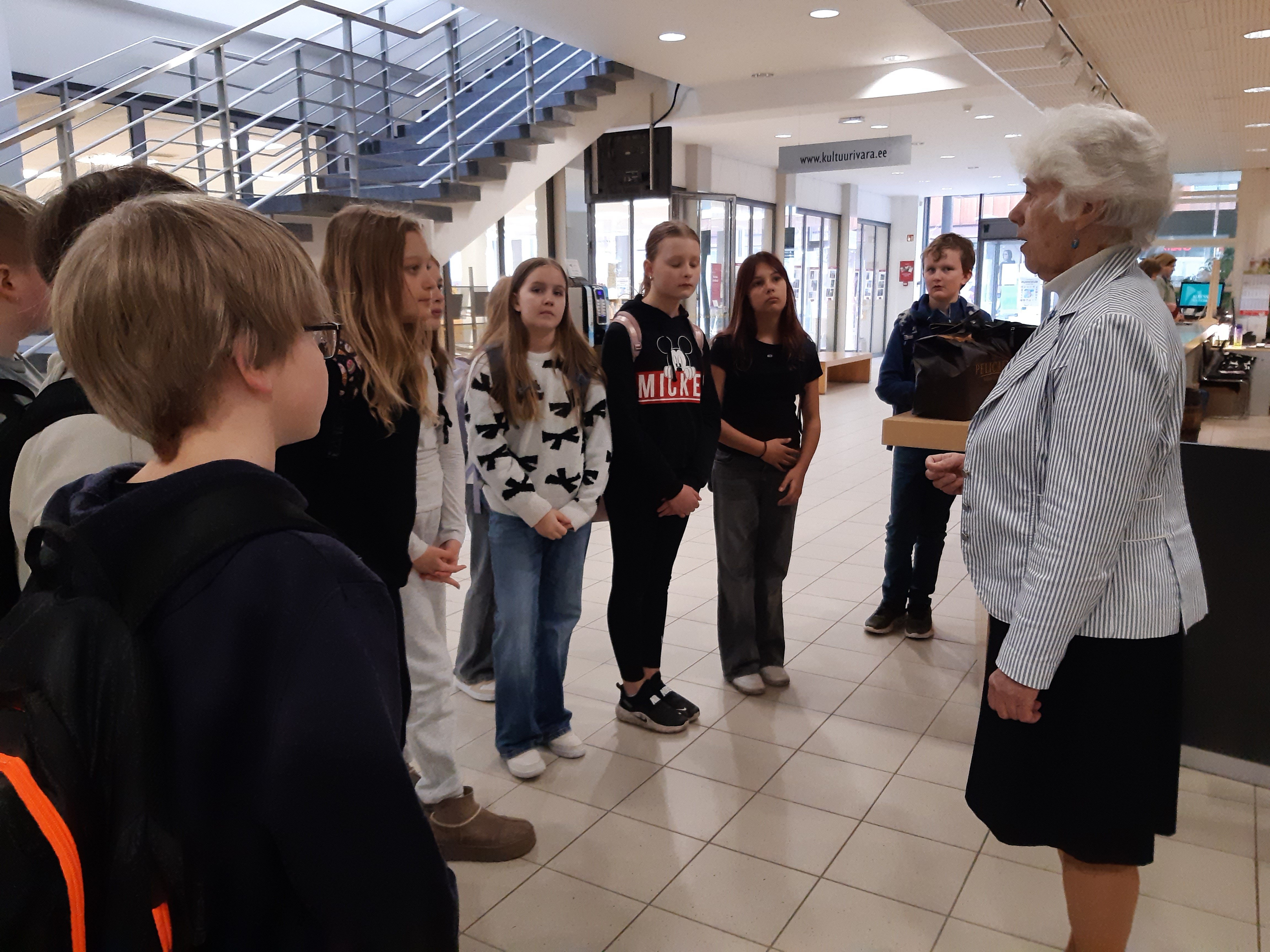 Meiega tegeles bibliograaf Maiu Paju. Külastasime laste osakonda, kus tutvustati raamatuid ja anti teavet, "Kuidas saada lugejaks?". Edasi liikusime laste lugemissaali. Seal tutvustati raamatuid, mis olid seotud emakeelepäevaga