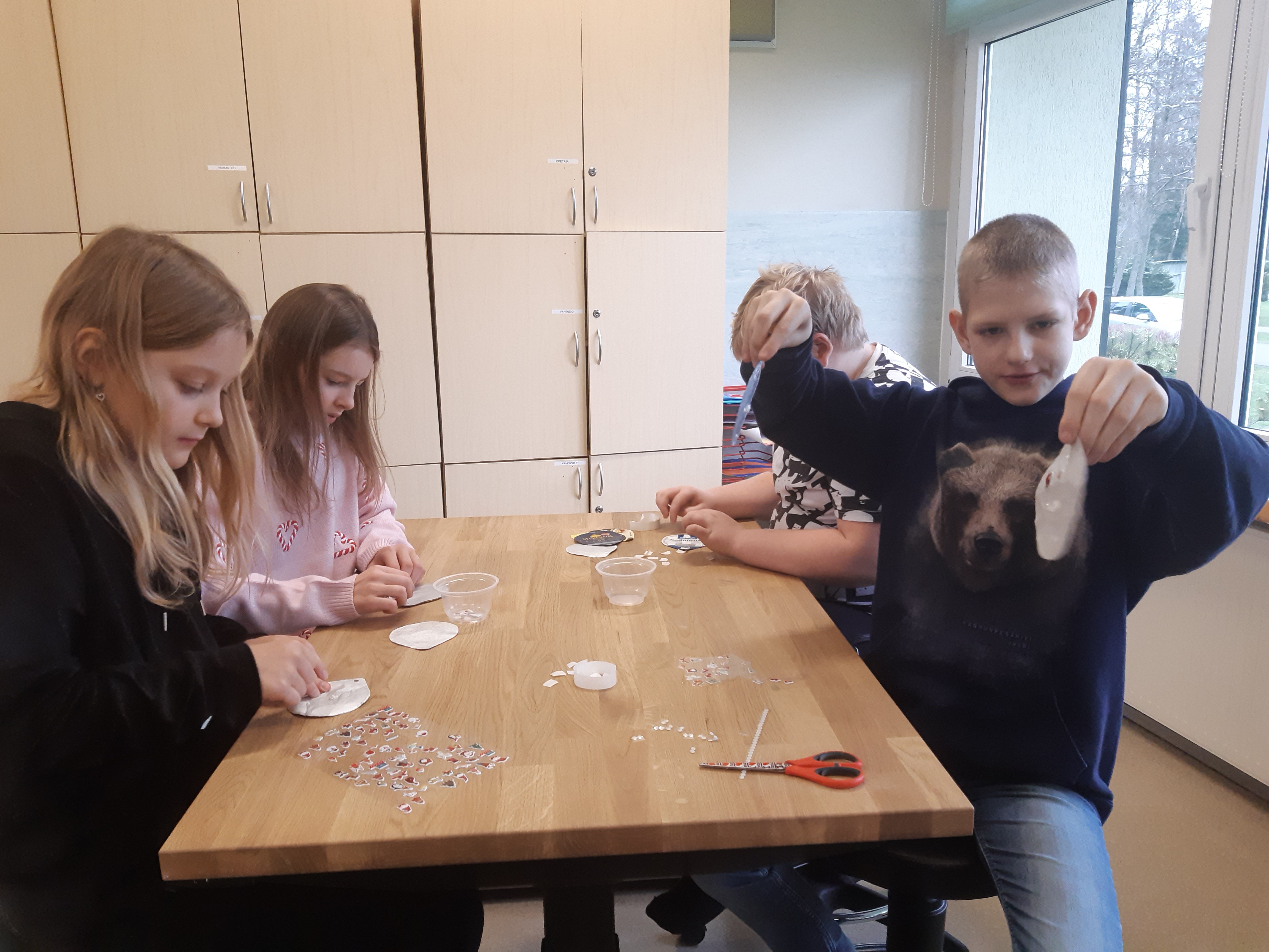 Kellel veel kodu, tuba või muu koht jõuluehteisse sättimata, siis 4. klassi õpilased jagavad ideed, kuidas valmistada taaskasutatavast materialist jõulukaunistusi.