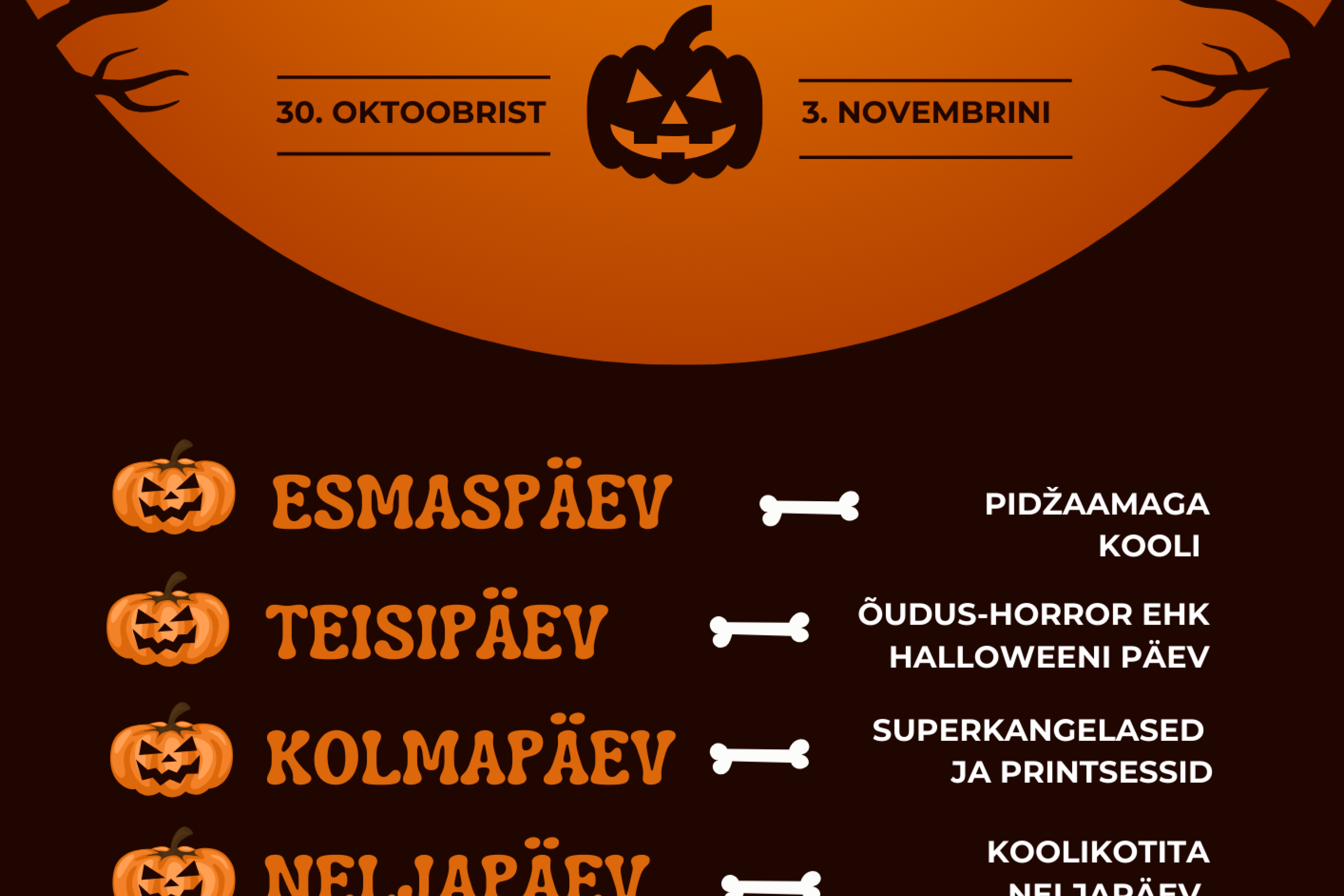 30. oktoobrist kuni 03. novembrini on Halloweeni nädal ja sellega seoses on erinevate nädalapäevade jaoks teemad.