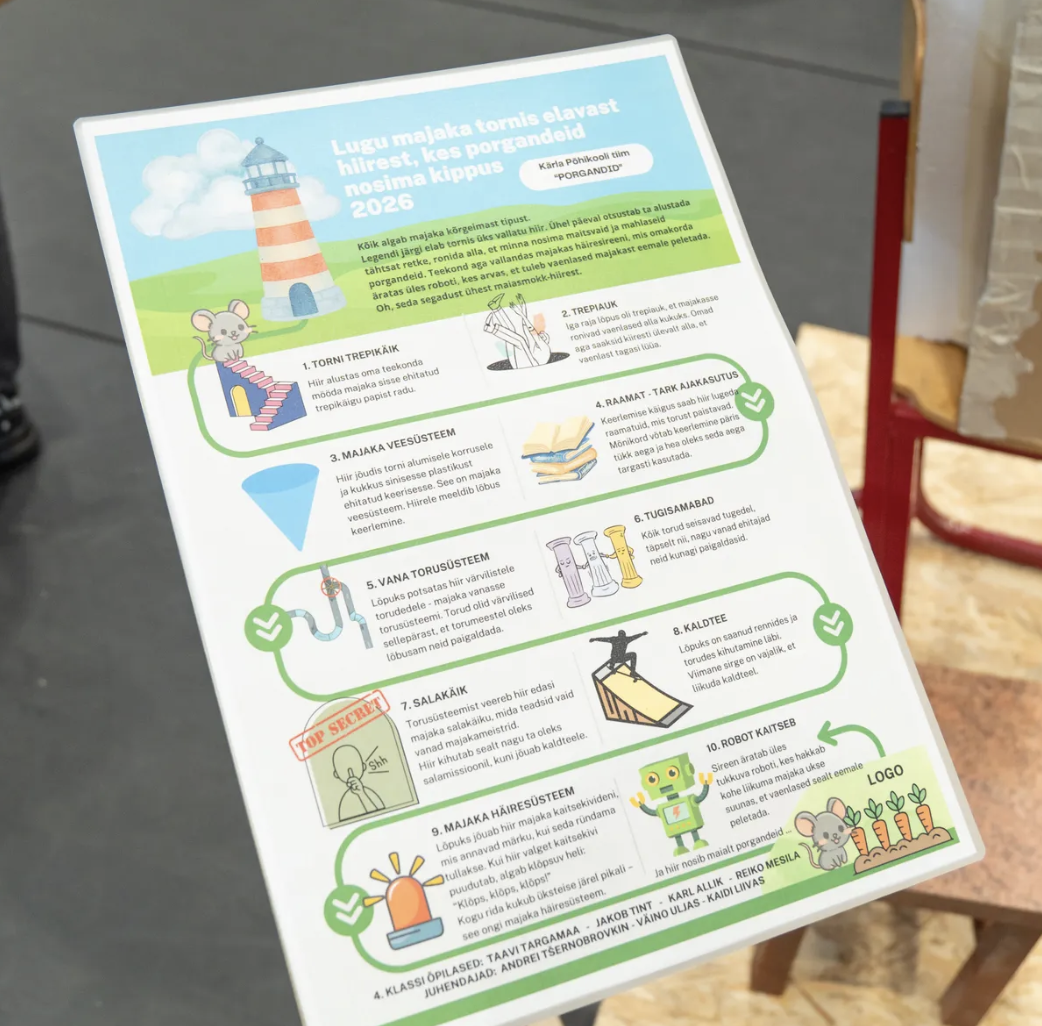Tiim, kuhu kuulusid Biibeli Lember (6. kl), Karoliina Koppel (5. kl) ja Adeele Pärnoja (5. kl). Nende ehitatud oli suur papist majaka torn koos rennide ja koonusega.