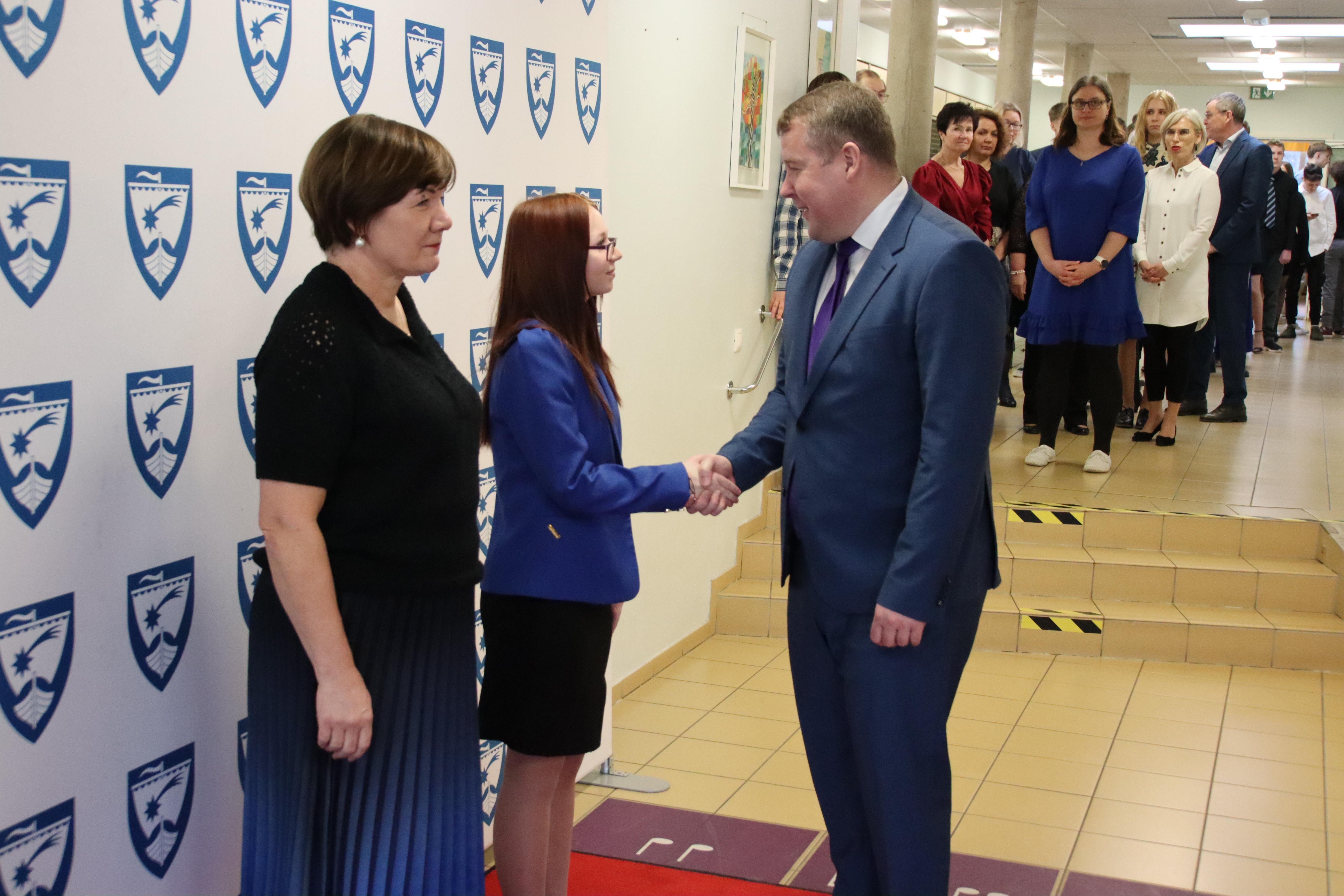 Peale tordi söömise pausi alustasime päeva kõige pidulikuma osaga – Eesti Vabariigi aastapäeva ja kooli sünnipäeva tähistamisega. Nii nagu juba traditsiooniks saanud, algas see piduliku vastuvõtuga, kus külalised kõndisid mööda punast vaipa koolijuhti ja õpilasesinduse presidenti tervituseks kätlema ning hümni saatel sai aktus avalöögi.