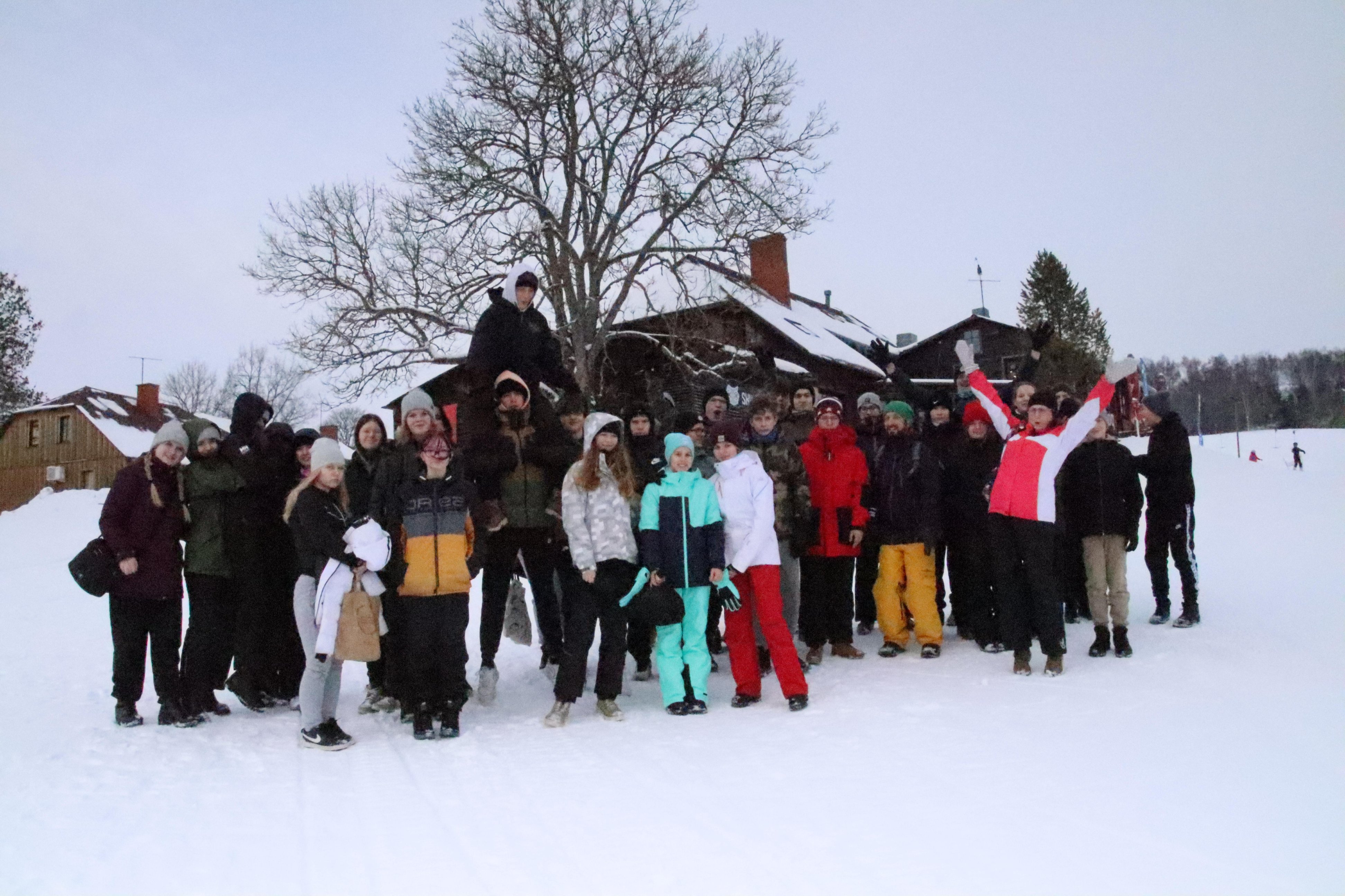 Hommik tervitas meid lumesajuga. Peale hommikusööki liikusime suusalaenutuse poole ja seejärel rajale. Võtsime esialgseks eesmärgiks kolm kilomeetrit. Tuleb tunnistada, et karmid tõusud ja järsud langused võtsid saarlased päris läbi. Meie ukrainlastest õpilaste jaoks oli see aga täiesti esmakordne kogemus.