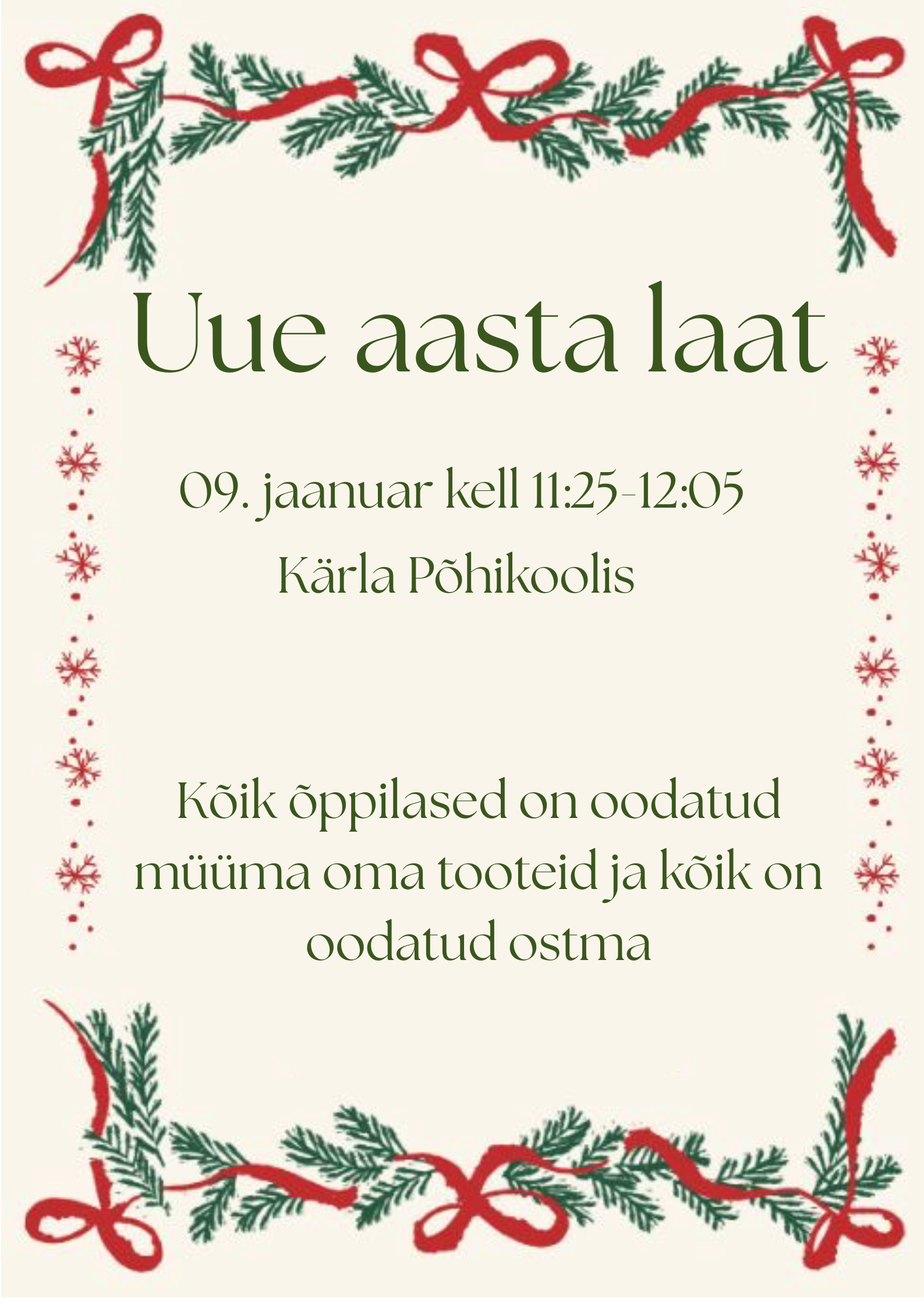 Sel reedel, 09. jaanuaril kell 11.25–12.05 on koolis UUE AASTA LAAT!